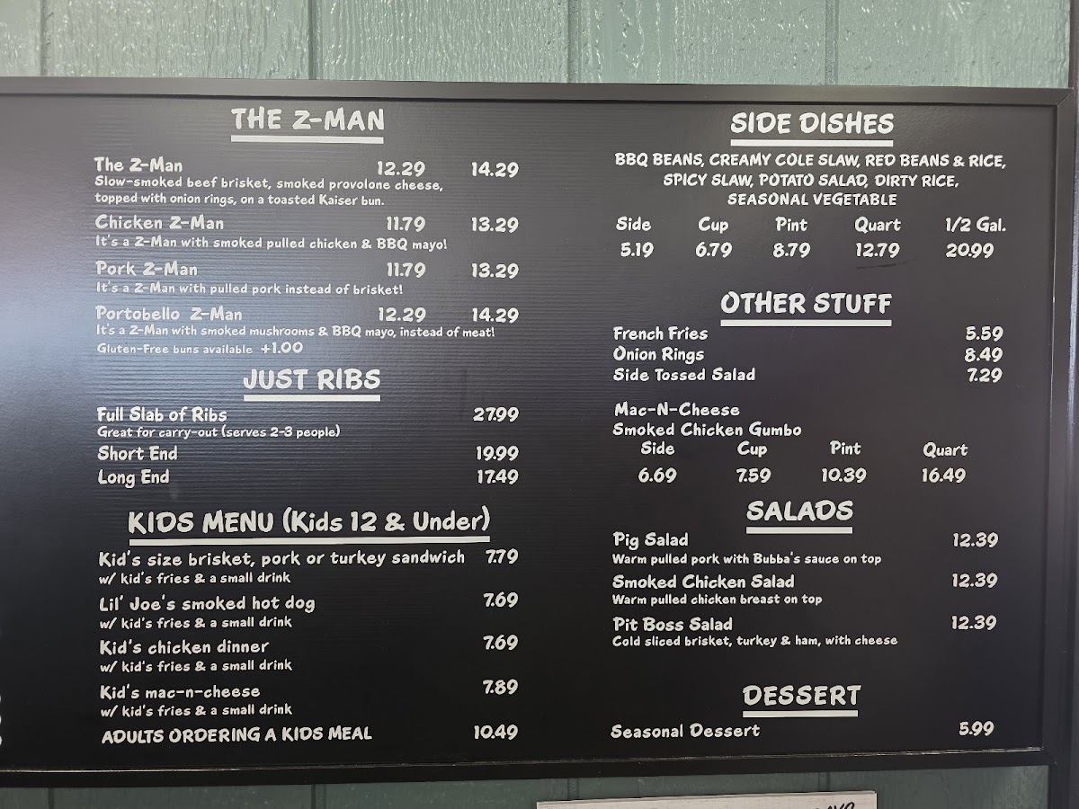 Sides and Extras: A variety of classic barbecue sides are available including onion rings, potato salad, dirty rice, BBQ beans, spicy slaw, and mac & cheese. Extras include various types of buns, sauces like BBQ mayo and their proprietary Night of the Living hot sauce, and dips such as ranch.