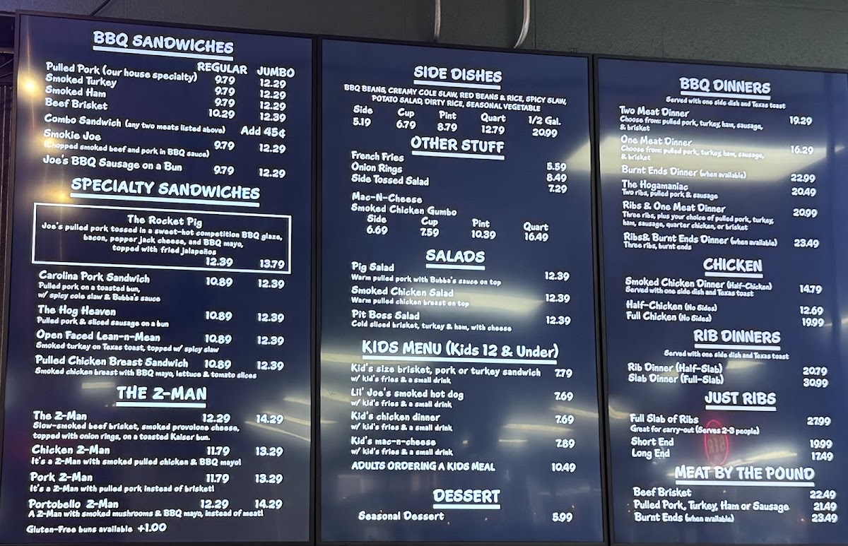 Joe's KC BBQ Menu